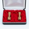 法人用【実印・銀行印】の2本セット(実印18.0mm・銀行印16.5mm)です。こちらの印材は『ゴールドチタンマット』を使用しています。ゴールドの高級感あふれる表面を少しざらつかせツヤ消しならではの重厚感溢れる仕上がりとなっています。ワンランク上を目指したい方にとって、特におすすめの逸品です。化粧ケースに入れてお届けいたします。
