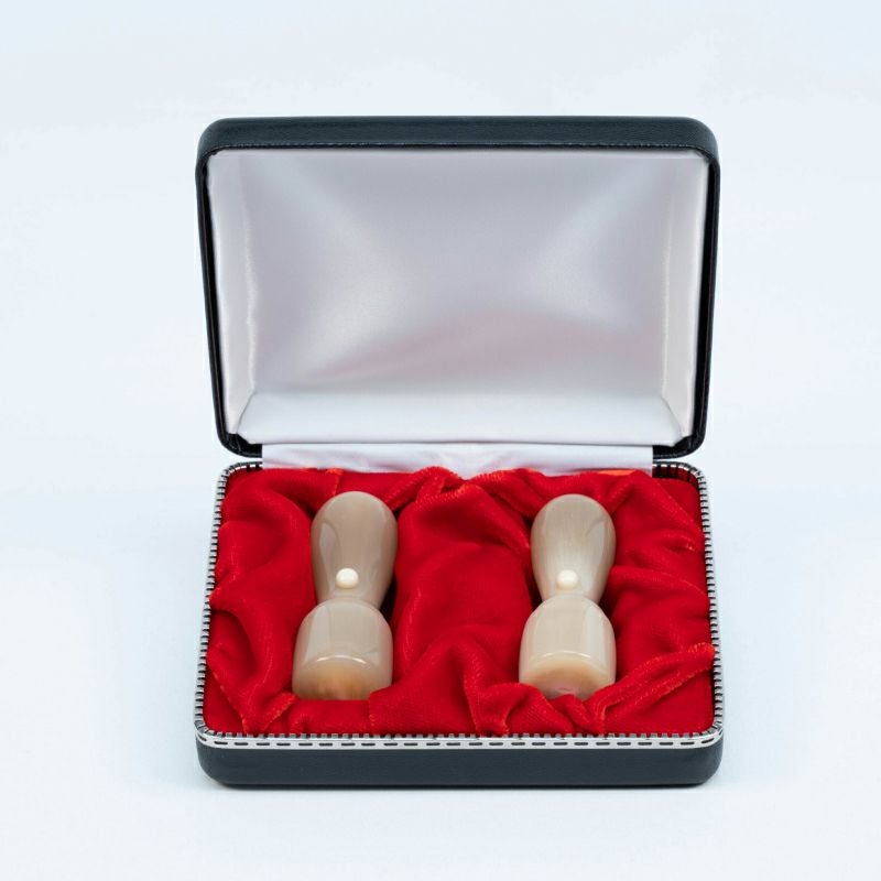 法人設立2本セット【実印・銀行印】牛角 純白 化粧ケース付