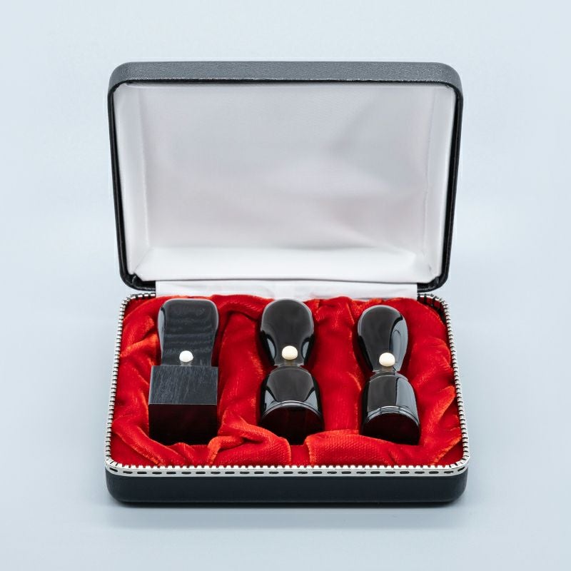 法人設立3本セット【実印(黒水牛)・銀行印(黒水牛)・角印(玄武)】 化粧ケース付