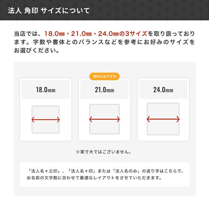 法人角印は、一般的には会社名のみが刻まれた印鑑で、法人実印よりもやや大きい21mm~24mmサイズで作成されることが一般的です。この角印は、領収書や請求書、注文書などの社外向け文書だけでなく、稟議書などの社内向け文書にも使用されます。一部の会社では、これを「社印」と呼ぶこともあります。