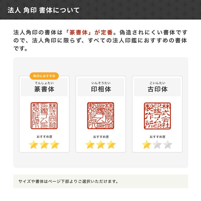 書体は商品ページにてお選びいただけます。入力変換で表示できない漢字でも印鑑作成が可能です。カート画面にて旧字コードをご入力ください。