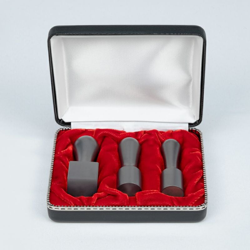 法人印鑑3本セット【実印・銀行印・角印】ブラックチタンマット 化粧ケース付