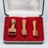 法人の立ち上げ時に必要な印鑑3本セット(実印18.0mm・銀行印16.5mm・角印21.0mm)です。こちらの印材は『ゴールドチタンミラー』を使用しています。ゴールドの光沢が、圧倒的な存在感と高級感を与えます。派手な印象ではなく、落ち着いたゴールドカラーが特徴で、ビジネスやプライベートなど幅広い場面で使用できます。この印鑑は長年保存しても変色や色落ちすることはありませんので、信頼性も抜群です。化粧ケースに入れてお届けいたします。