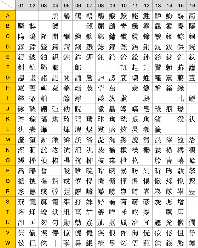 [例:髙(A16)] ▶︎旧字コード表はこちら