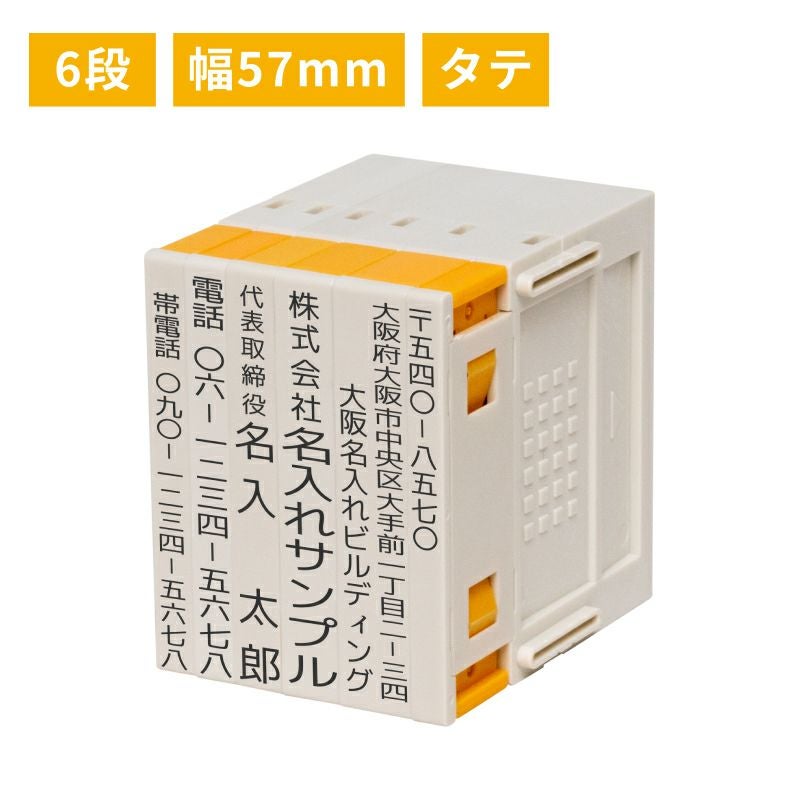 プッシュオフ分割印は、お名前や電話番号などを1段ずつ組み合わせて作成できる住所印です。連結して住所印として使うのはもちろんのこと、分割して一行印としてもご利用いただけます。住所や電話番号が変更になった際も、該当部分だけを追加購入して入れ替えることで対応可能です。プッシュオフ分割印は、サイドボタンを押すことでワンタッチで簡単に組み合わせたはんこを取りはずすことができます。厚みには5mm、6mm、7mm、8.5mm、10.5mmの5種類がありますが、厚みごとに価格は変わりません。これにより、行ごとにバランスの良いレイアウトを実現することができます。