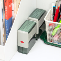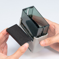半透明カバーで押したい場所が透けて見えるため、狙った場所に押しやすく、連続捺印も可能です。本体内にインク台が内蔵されており、汚れを気にせずに収納いただけます。