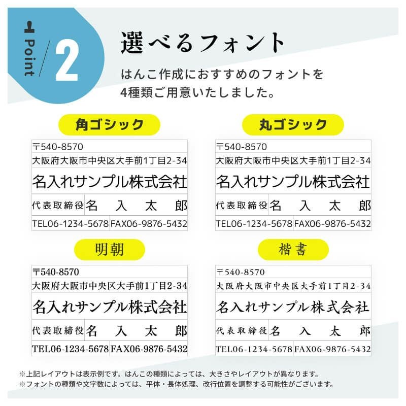テキスト情報のご入力だけで簡単にゴム印が作成いただけます。